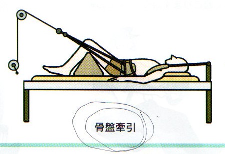さて、私の腰の治療ですが、上の図のような骨盤牽引、をやってもらいます。