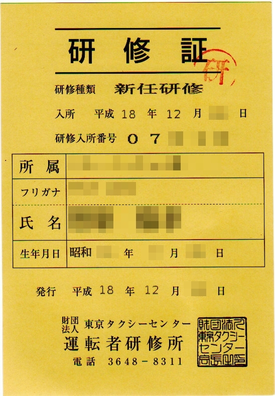 これで、タクシーで営業する資格を持つことができました。